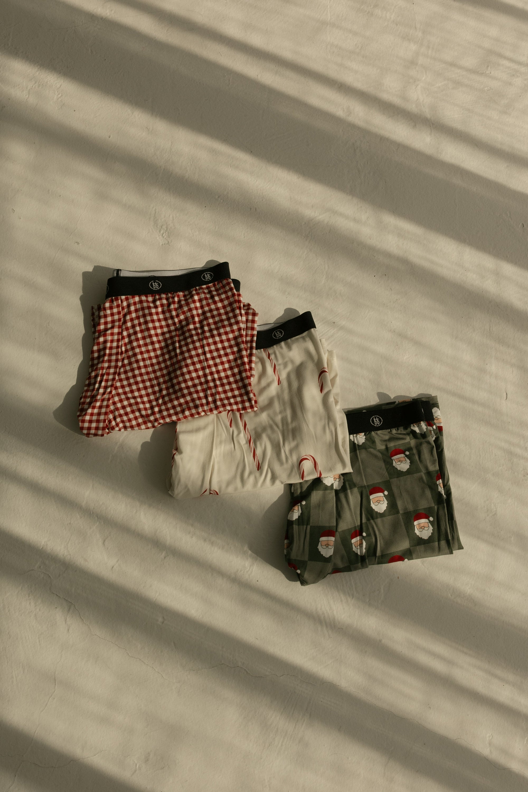 Men's Bamboo Boxers (3 Pack) Red Gingham, Candy Cane & Santa Checkerboard